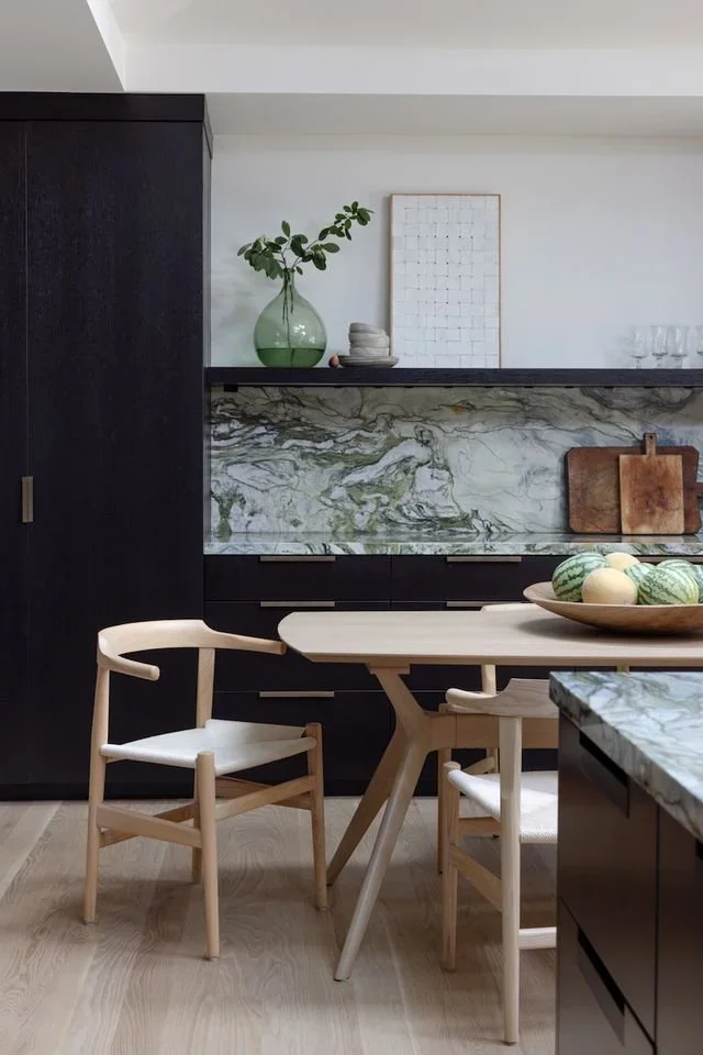 Why choose just one stone when you can mix and match? Combining different natural stone varieties and color combinations is gaining traction, bringing depth, contrast, and a custom feel to kitchen designs. Whether pairing marble with quartzite or blending complementary shades for a monochromatic look, this trend allows for a personalized and dynamic space.