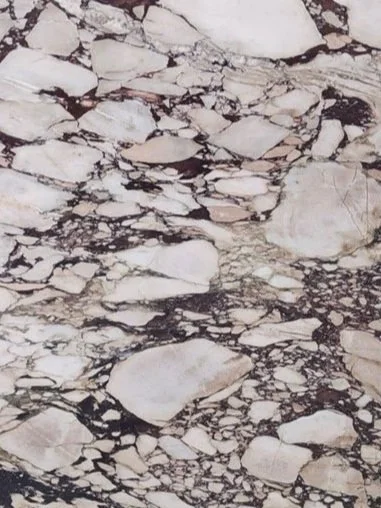 This variety is known for its bold golden, rust and gray veining, often forming dramatic, cloud-like patterns. Its name translates to "old stain," referring to the aged, antique quality of its veining that makes this marble particularly unique.