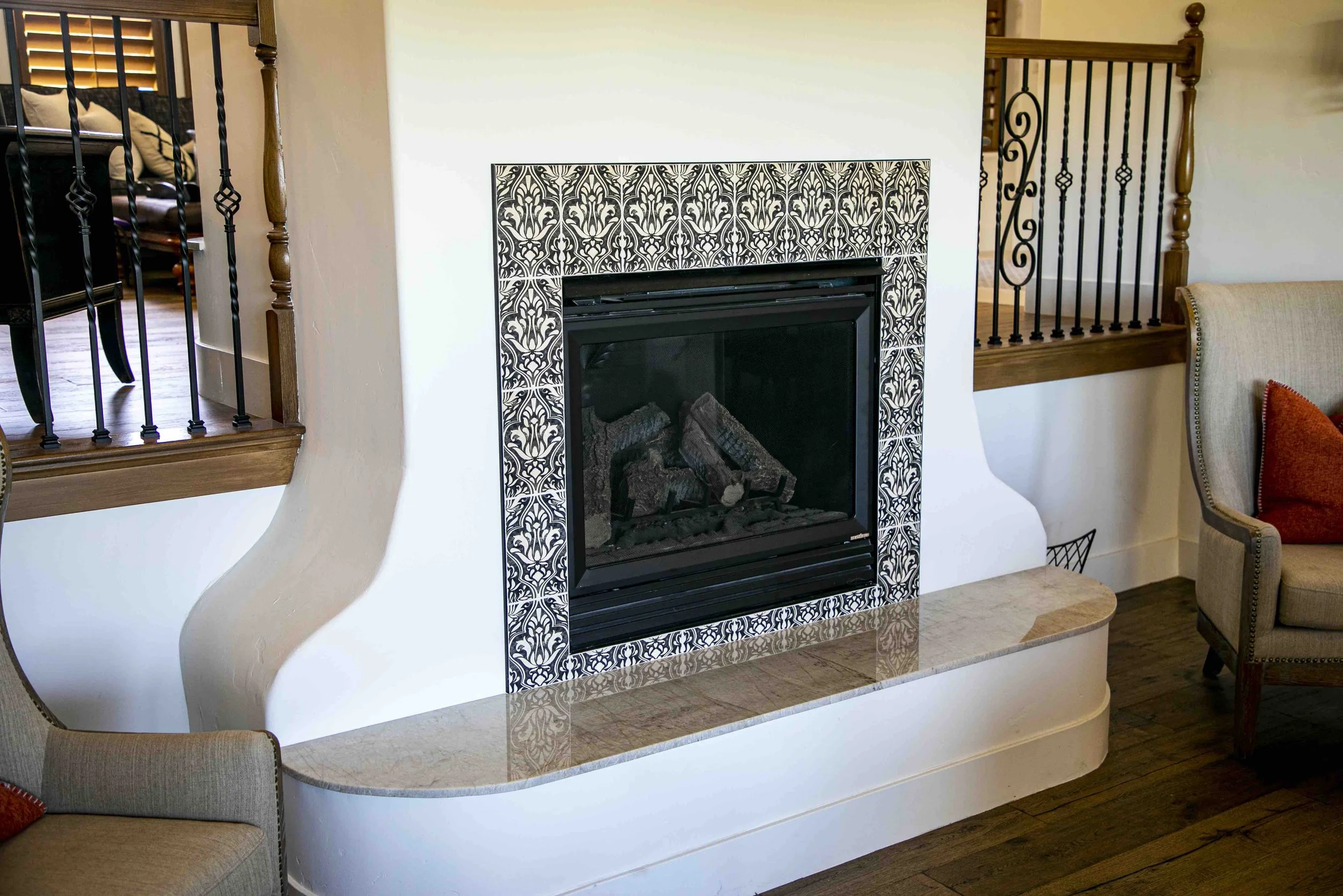 A cohesive fireplace design often includes a hearth and mantel. You can match these elements with your surround slab for a seamless look or use a complementary stone or wood for contrast.