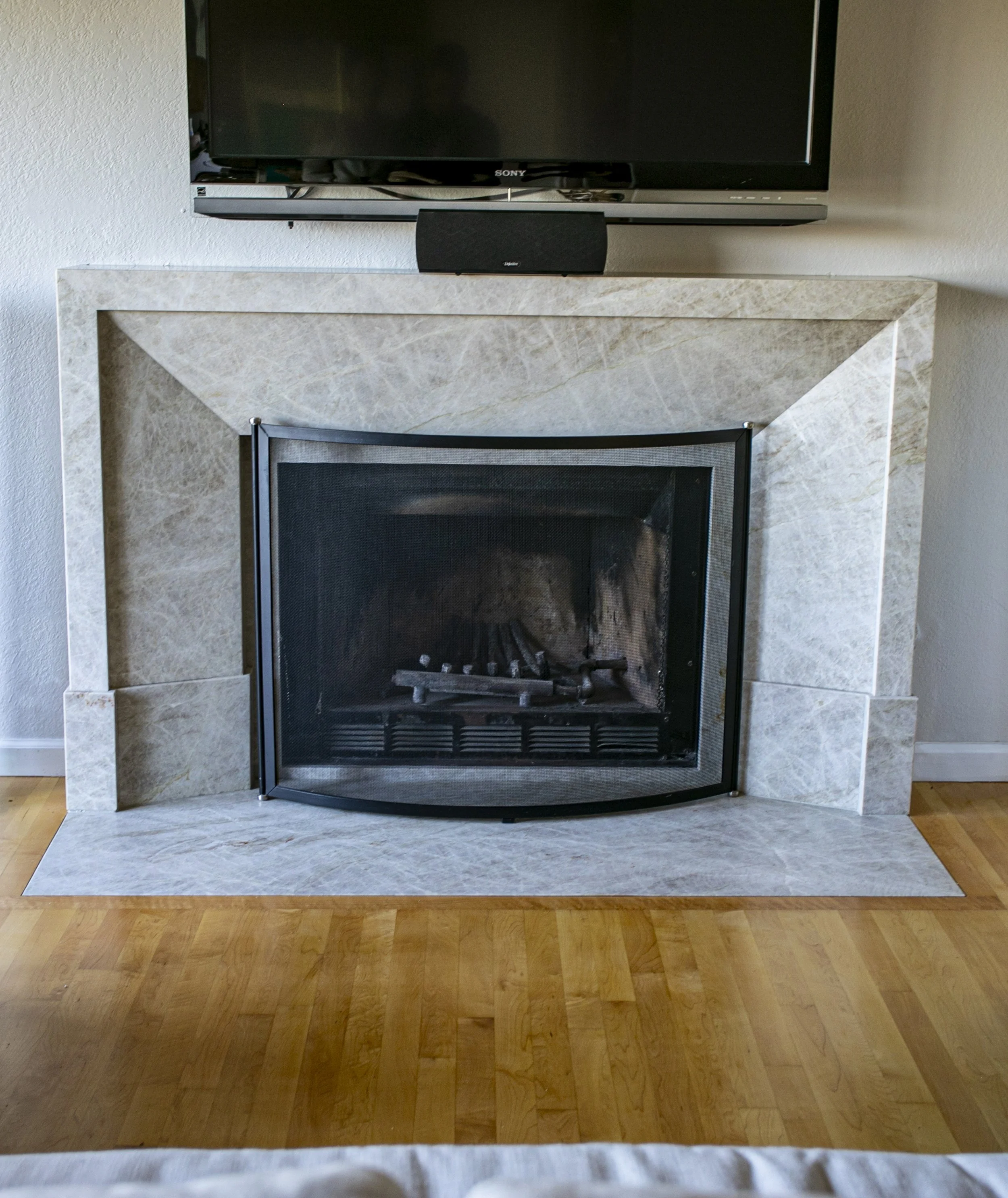 Stone slabs come in various finishes that can dramatically alter the final look of your fireplace.