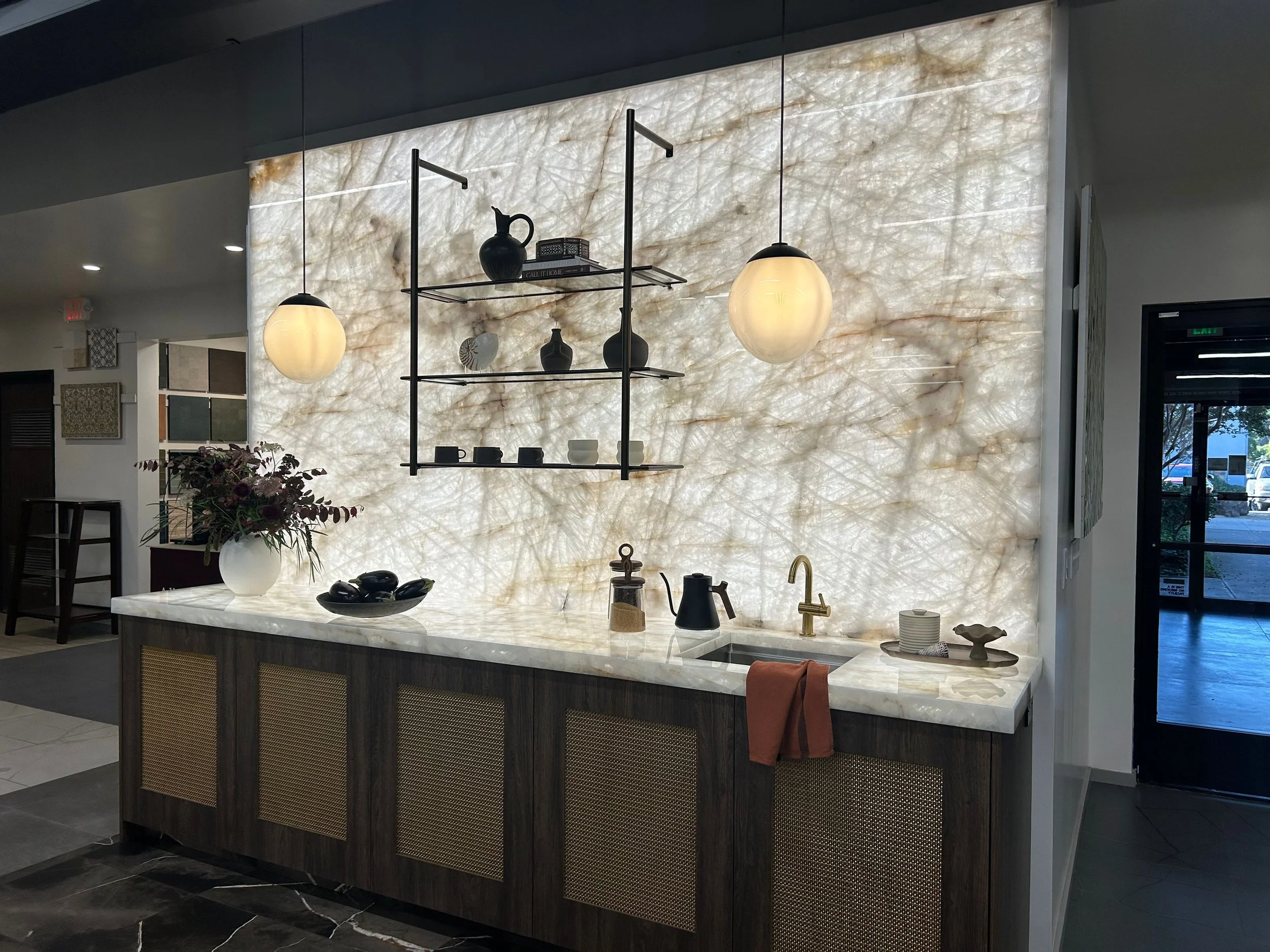 We wanted it to feel intentional and beautifully integrated, without competing with the stunning showroom materials surrounding it.